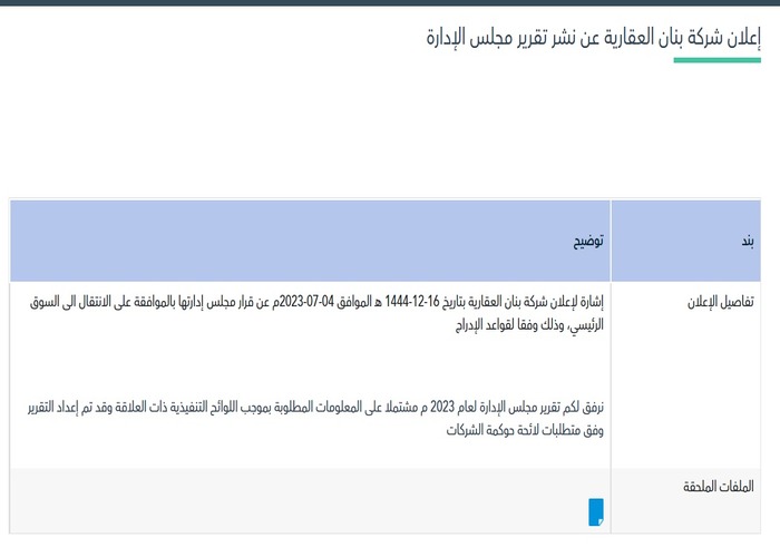 إعلان شركة بنان العقارية عن توصية مجلس الإدارة بشأن تحويل الاحتياطي النظامي للشركة إلى بند الارباح المبقاه.أبريل 28, 2025للمزيد